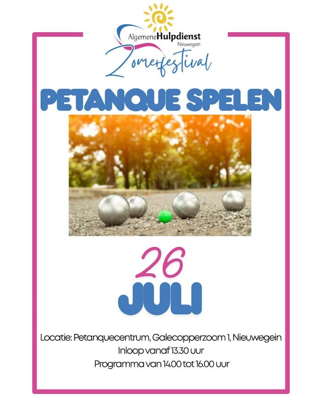 Op zaterdag 26 juli trappen we het AHN Zomerfestival af met een gezellige middag Pétanque (jeu de boules) bij het Petanquecentrum aan de Galecopperzoom!
