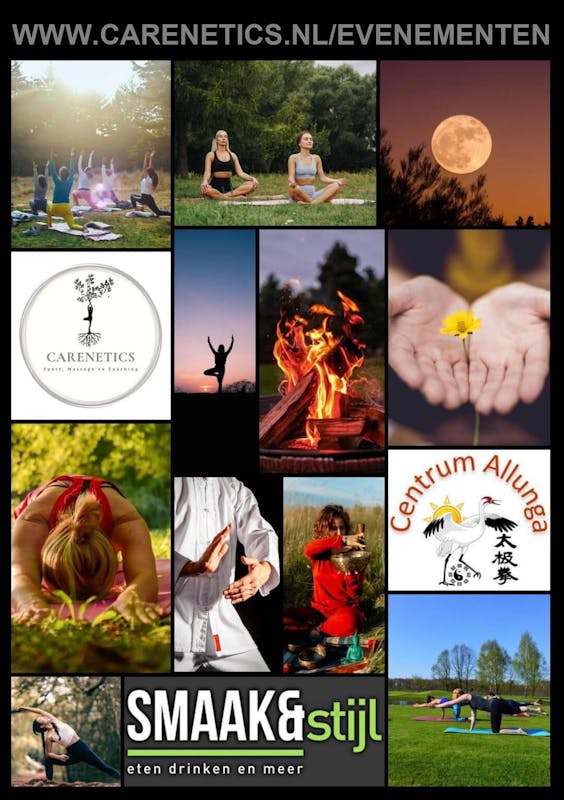 Zonder te veel te verklappen enkele keywords: ademwerk, meditatie, tai chi, qi gong, kampvuur en ......