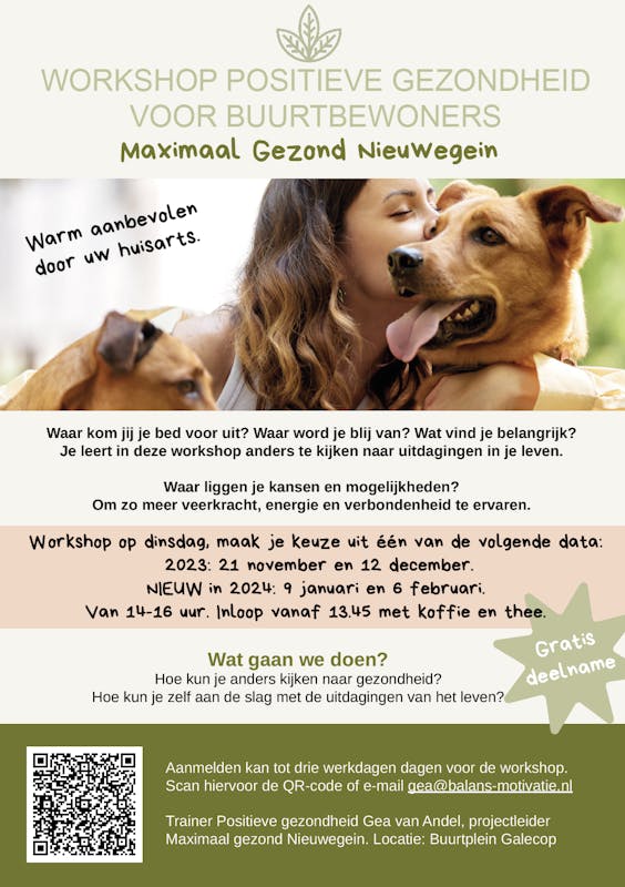 In deze workshop leer je anders kijken naar gezondheid, en hoe je zelf aan de slag kunt met de uitdagingen van het leven.