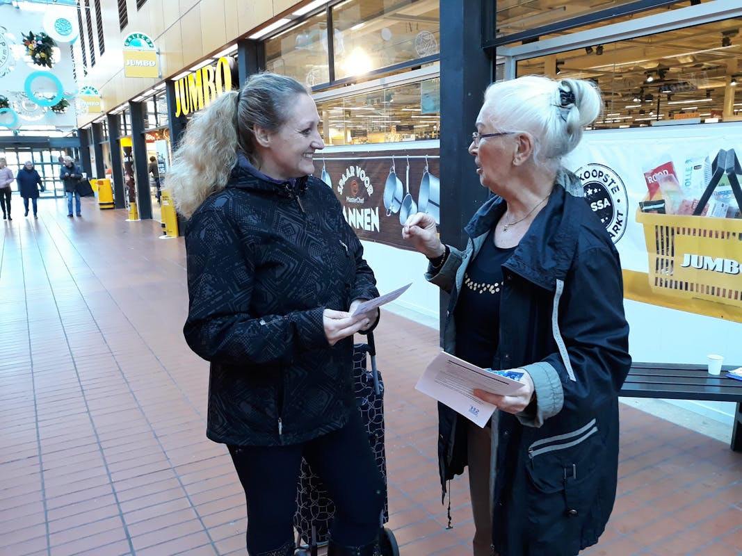 Een mevrouw trok de kaart: "Wat doe jij graag om te ontspannen?" Vandaar kwamen we op een gesprek over boeken lezen, opgroeien in een jappenkamp en vrijwilligerswerk met zieke kinderen. Een andere mevrouw gaf ook aan vrijwilligerswerk te hebben gedaan, maar tegenwoordig vooral tijd nodig te hebben voor mantelzorg. En hoe zij geniet van de natuur in de wijk. Maar hoe jammer dat de bomen langs de Reinsteinseweg gekapt gaan worden. Weet u waarom en wanneer? Hoe verrassende vragen leiden tot bijzondere gesprekjes in het winkelcentrum. Bea en Fransje vonden het fijn om u gesproken te hebben en kennis gemaakt te hebben. Volgende week dinsdag zien buurtverbinders Fransje en Hanz u graag weer in het winkelcentrum Galecop! Tussen 11:00 en 12:00 uur.