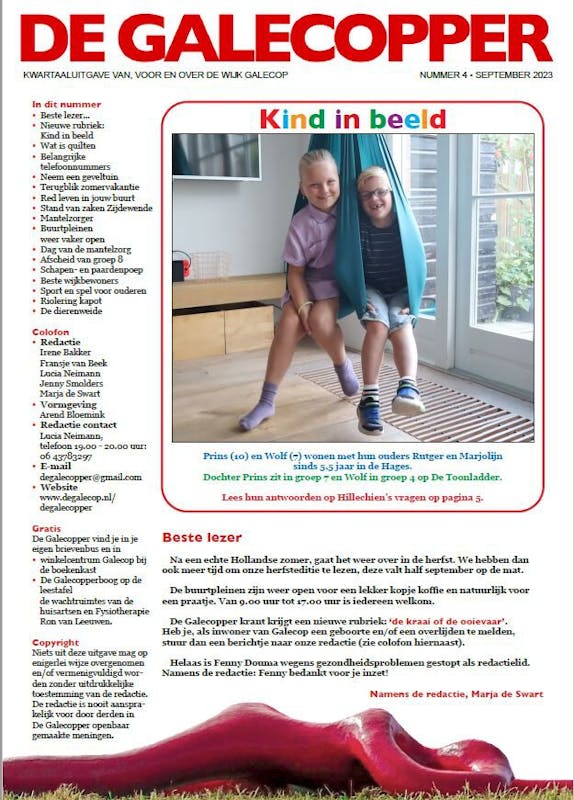 Velen zullen m al ontvangen hebben. De Galecopper van september. Heb je m gemist? Dan kan je de wijkkrant hier digitaal bekijken. Er is weer hard aan gewerkt door een groepje enthousiaste Galecoppers om deze wijkkrant te maken én huis-aan-huis te bezorgen. We krijgen veel positieve reacties van onze lezers. Heel fijn om te merken dat een papieren wijkkrant gewaardeerd wordt!