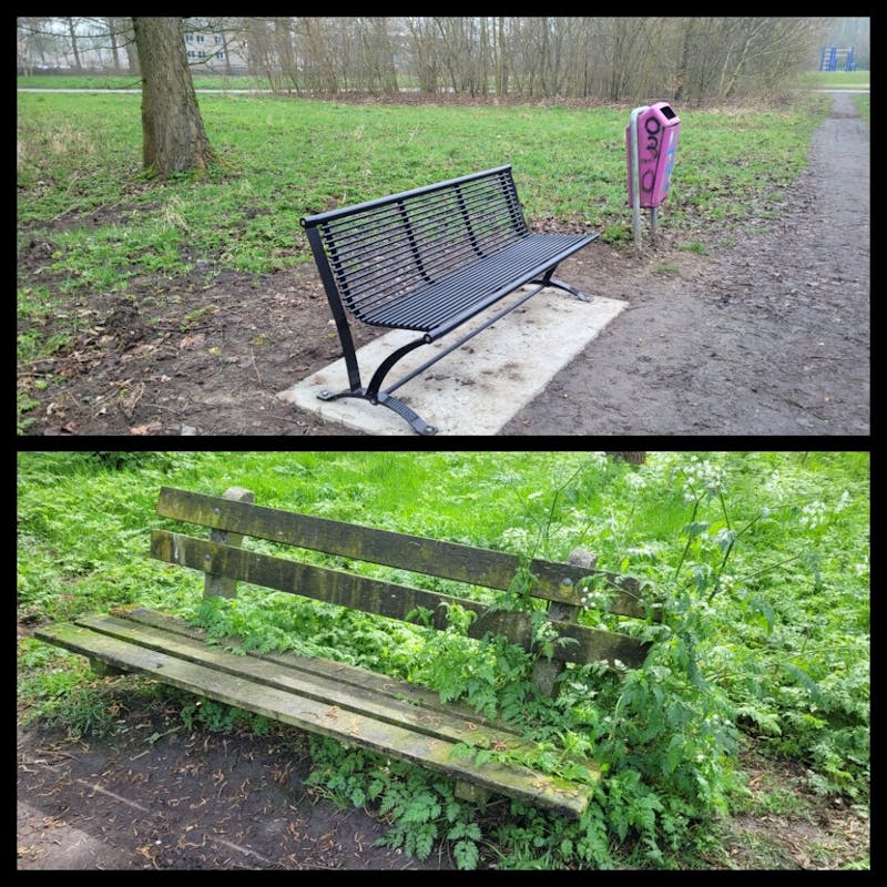 Eind vorig jaar 2024 had ik de gemeente Nieuwegein geïnformeerd dat het niet prettig was om op het bankje in het park te zitten. Park omgeving Dirk van Delenhage in de wijk Galecop. En nu, een geweldig nieuw bankje om even prettig te zitten na een rondje met de hond. Fijn om vernieuwing te zien in de Gemeente.