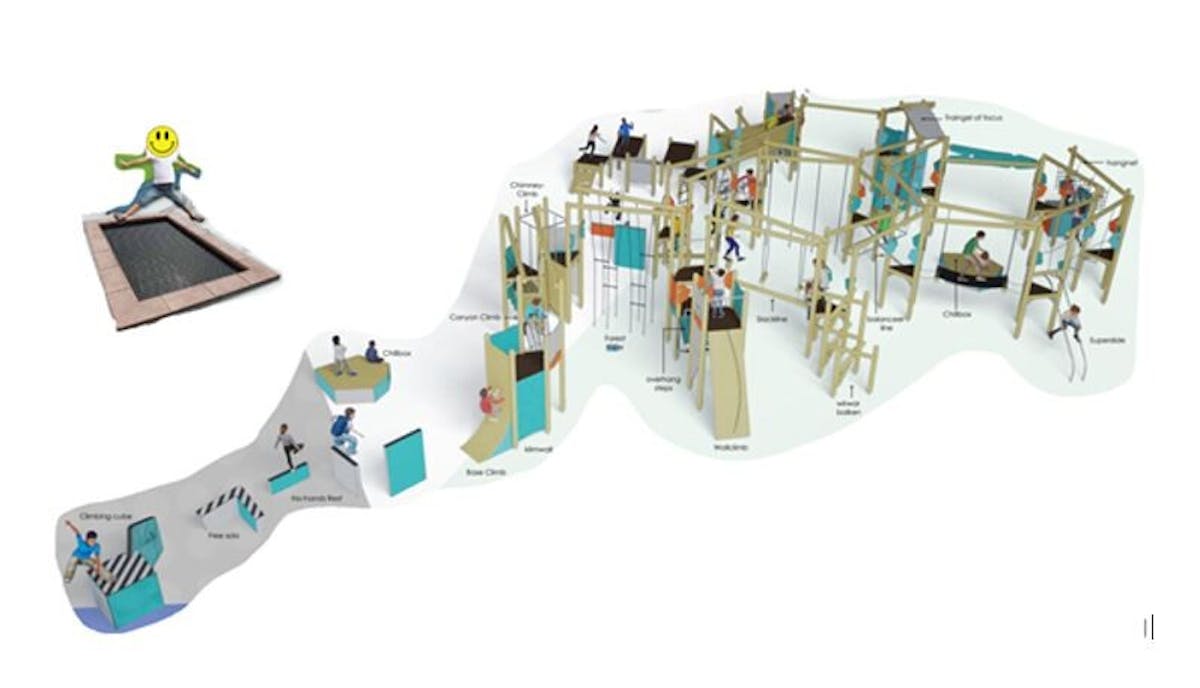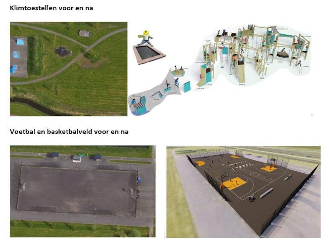 Maandag 24 februari is hiermee gestart. De bestaande klimtoestellen achter de skatebaan zijn aan vervanging toe. Er komen sporttoestellen die meer bij de huidige wensen passen en ook meer uitdaging geven. Dit komt onder andere tegemoet aan de wensen van freerunning, obstaclerun, ninjaparcours. In de maand maart, worden de klimtoestellen verwijderd, het parcours aangelegd, valzand aangebracht en wordt een bloemen zaden mengsel in de grond verwerkt.