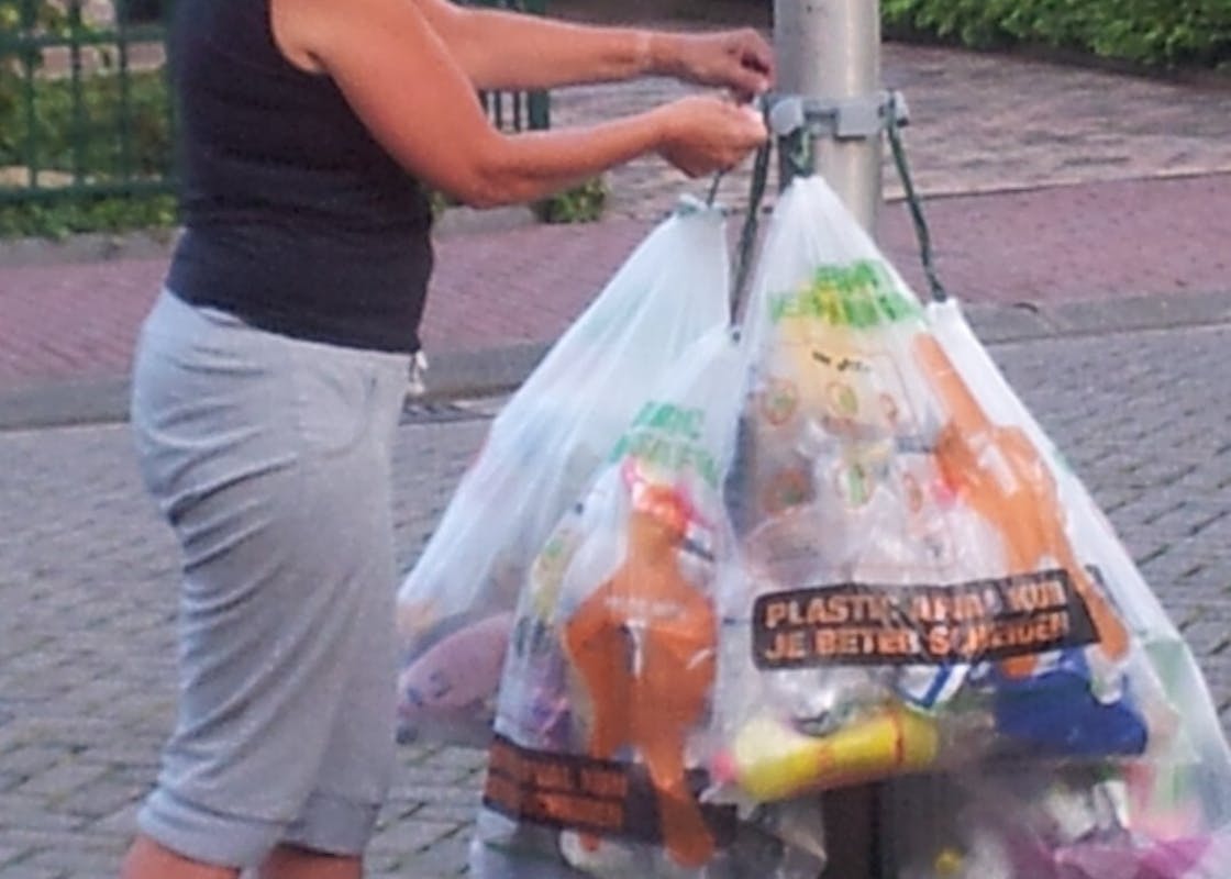 De buurtverbinders kregen de afgelopen tijd herhaaldelijk de volgende vraag: "zijn er ook ringen te verkrijgen om de plasticafvalzakken aan op te hangen rond een lantaarnpaal? De volle zakken liggen namelijk geregeld in de sloot of het plantsoen."