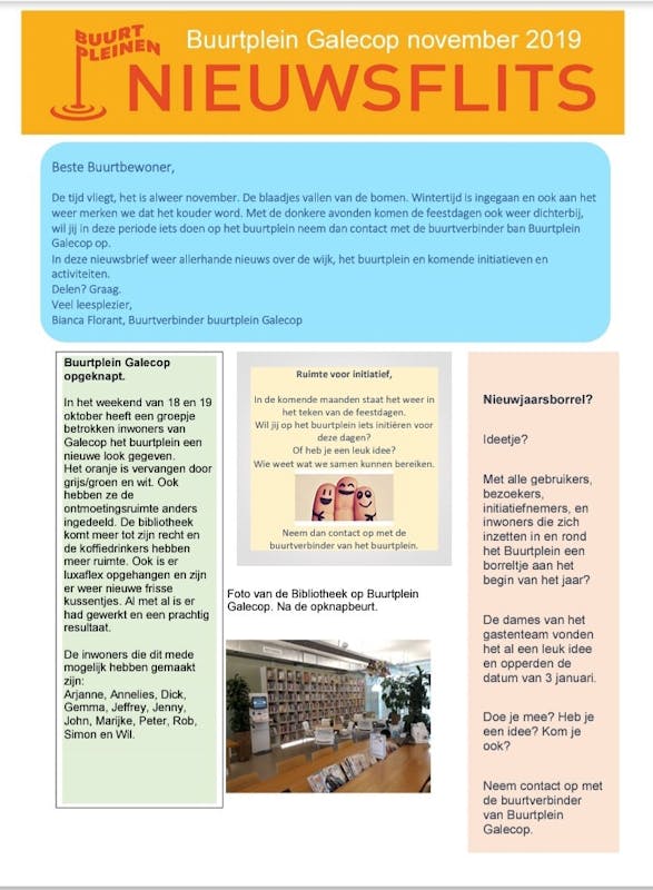 In deze nieuwsbrief weer allerhande nieuws over de wijk, het buurtplein en komende initiatieven en activiteiten.