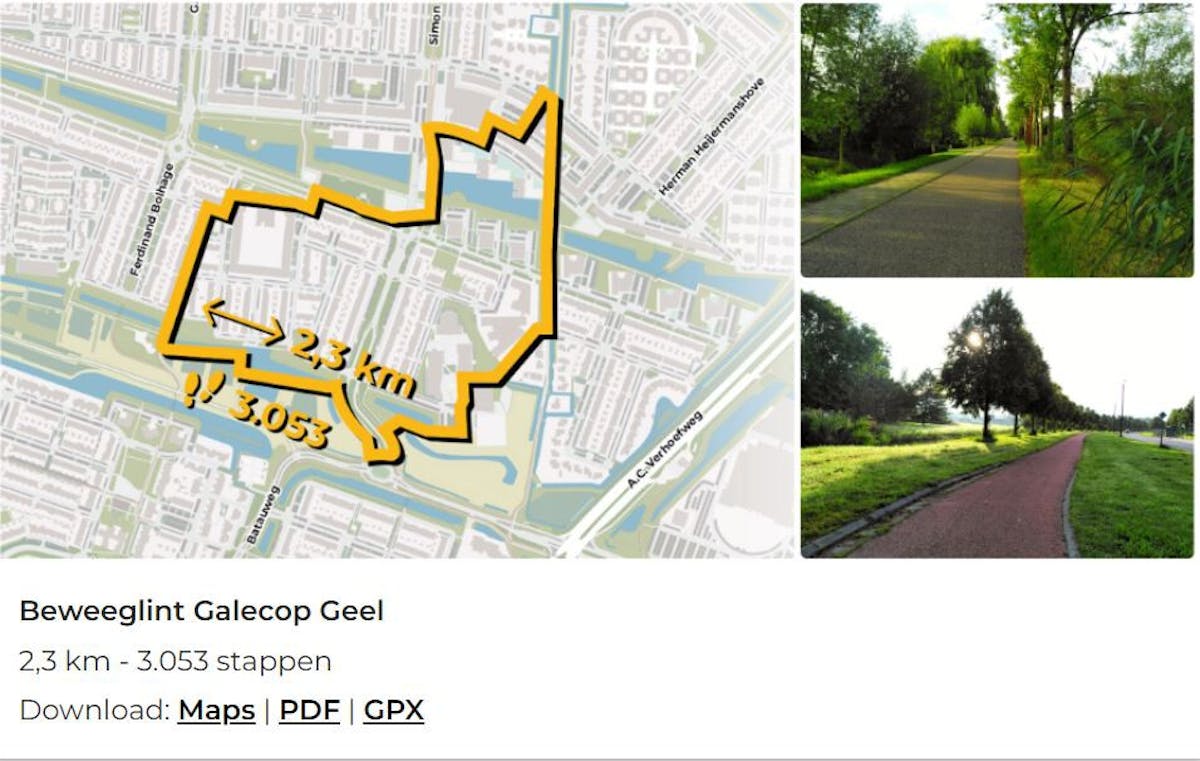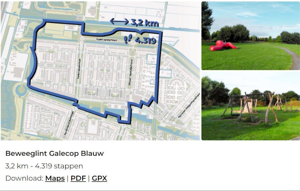 Onlangs heeft wethouder John van Engelen de beweeglinten in Nieuwegein officieel geopend. In Galecop starten de routes op het Beweegplein aan De Kempenaerpark.