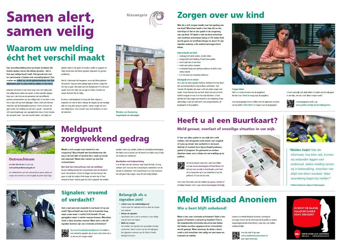 Veiligheid is een belangrijk speerpunt. Zeker nu, na de gebeurtenissen van het afgelopen jaar in onze stad en elders in het land. Daarom hebben we afgelopen donderdag een special over veiligheid in de Molenkruier gepubliceerd (zie Molenkruier special veiligheid.pdf). Deze stond in het teken van het vergroten van de meldingsbereidheid en het herkennen van signalen.