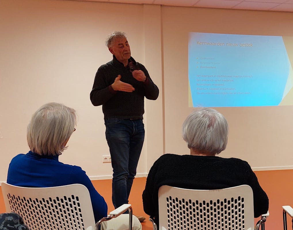 Dinsdagavond 7 maart hield Theo Kleijer een presentatie over het gemeentelijk groenbeheer tijdens de 1e themabijeenkomst van het Wijkoverleg Galecop. Een nieuw initiatief van het Wijkoverleg. Zo’n 25 bewoners toonden hun interesse in buurtplein De Galecopperboog. Theo Kleijer is als medewerker van de gemeente Nieuwegein verantwoordelijk voor het onderhoud van het openbaar groenbeheer. Hij vertelde geanimeerd over het aanbesteden van de diverse werkzaamheden, de werkwijze van de aannemers en de toezichthouders en de nieuwe ambities van de gemeente.